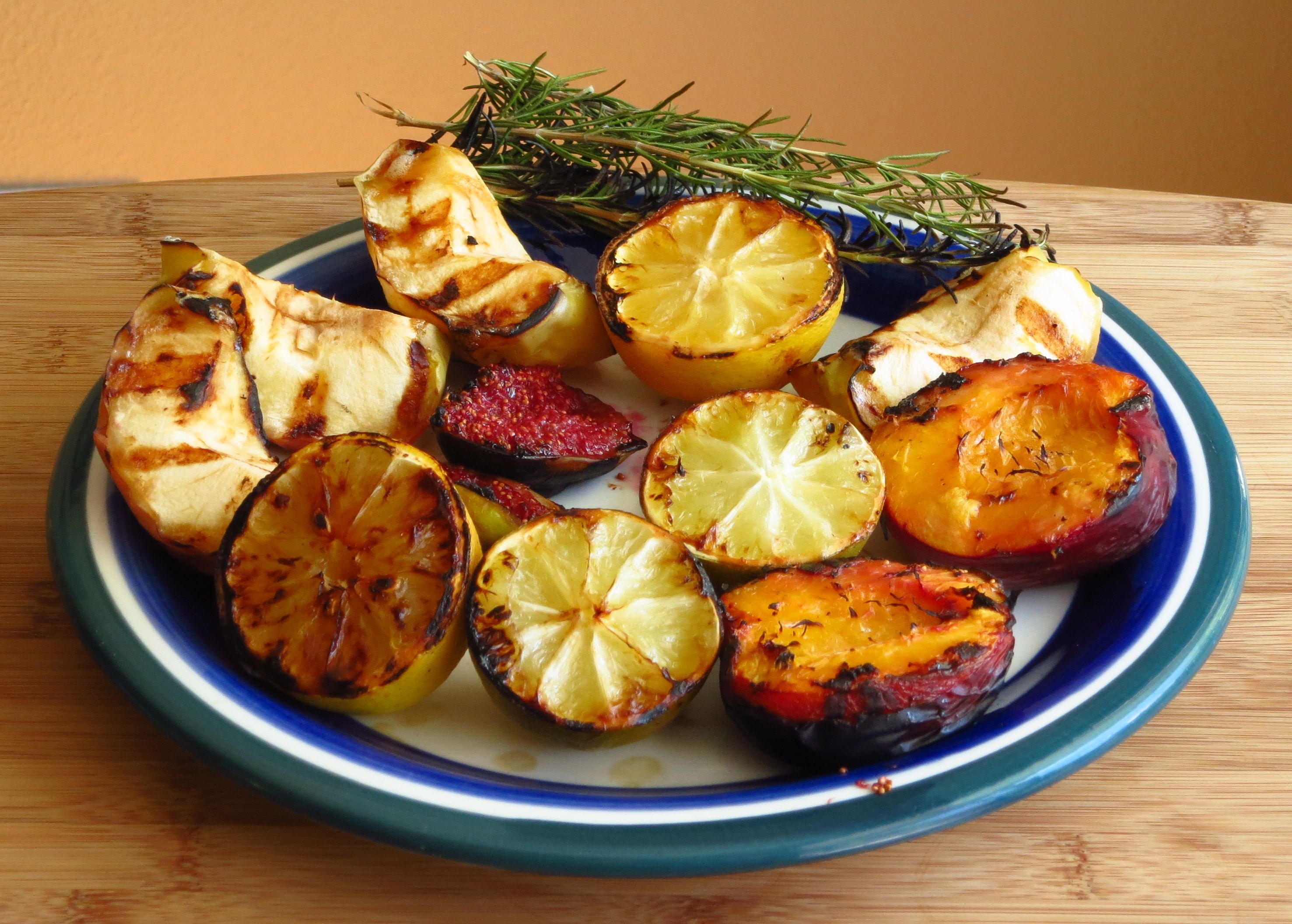 It’s Mixology Monday time again! This month’s theme comes from the Muse of Doom at Feu de Vie. The theme this month is Fire! The Muse has a pretty liberal interpretation of the theme so we went with grilled fruit and herbs. We decided to try a large selection and experiment. Grilled apples, nectarines, limes, lemons, figs, and rosemary. Some were winners, some were losers, read on to to find out which was which.