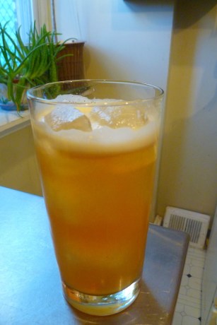We get the old-school Private Shandy from our MxMo headmaster Fred Yarm at Cocktail Virgin Slut. Nice to see some West coast-style IPA putting in an appearance in this challenge. Love the addition of cinnamon syrup for a little bit of warming spice.