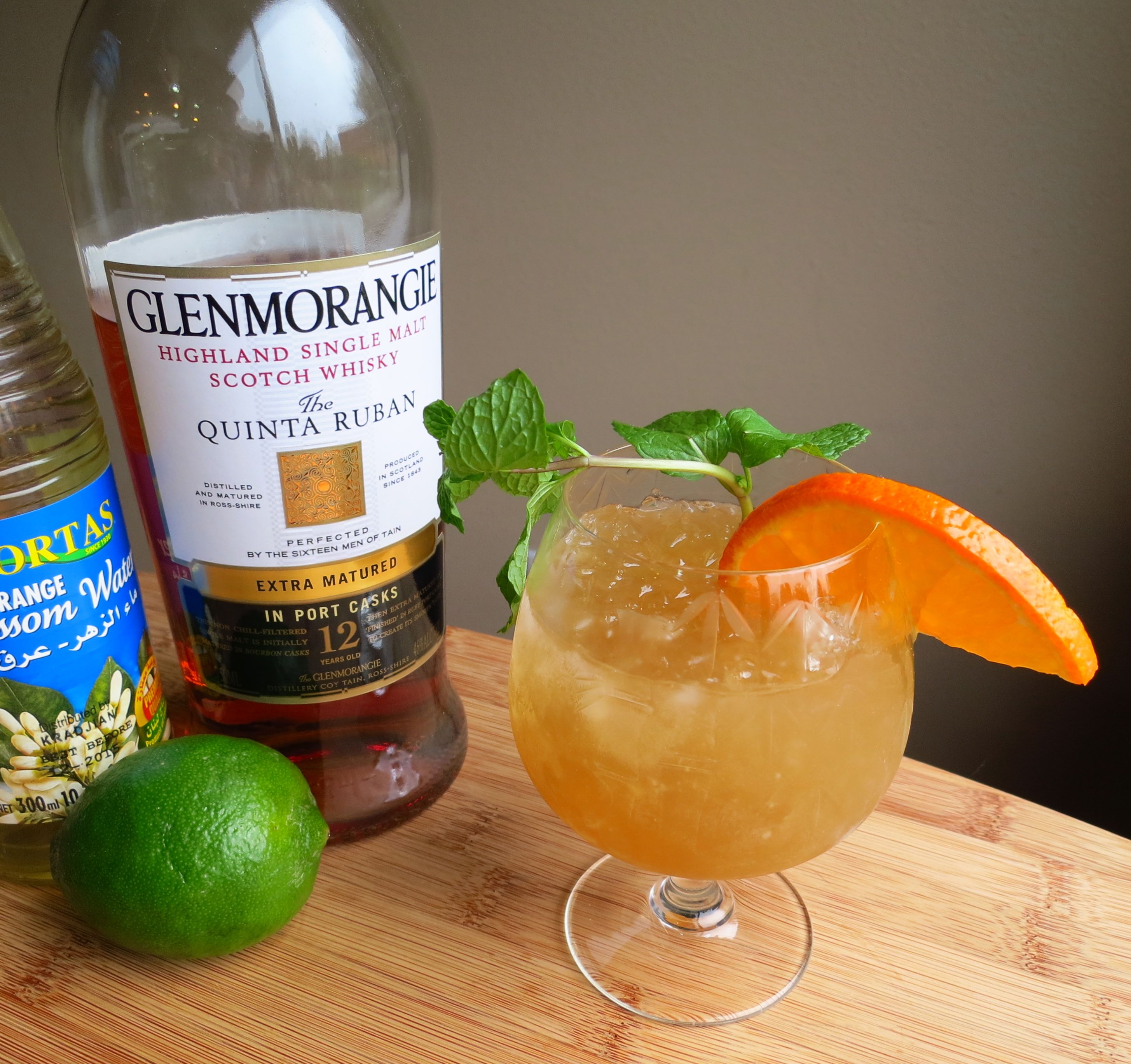 - Palate: Orange blossom and sweet caramel-y oak from the scotch to start, underpinned by a bit of peat and smoke. Lemon , mint, plus lime and spice from the falernum on the mid-palate. Orange blossom & clove on the finish.