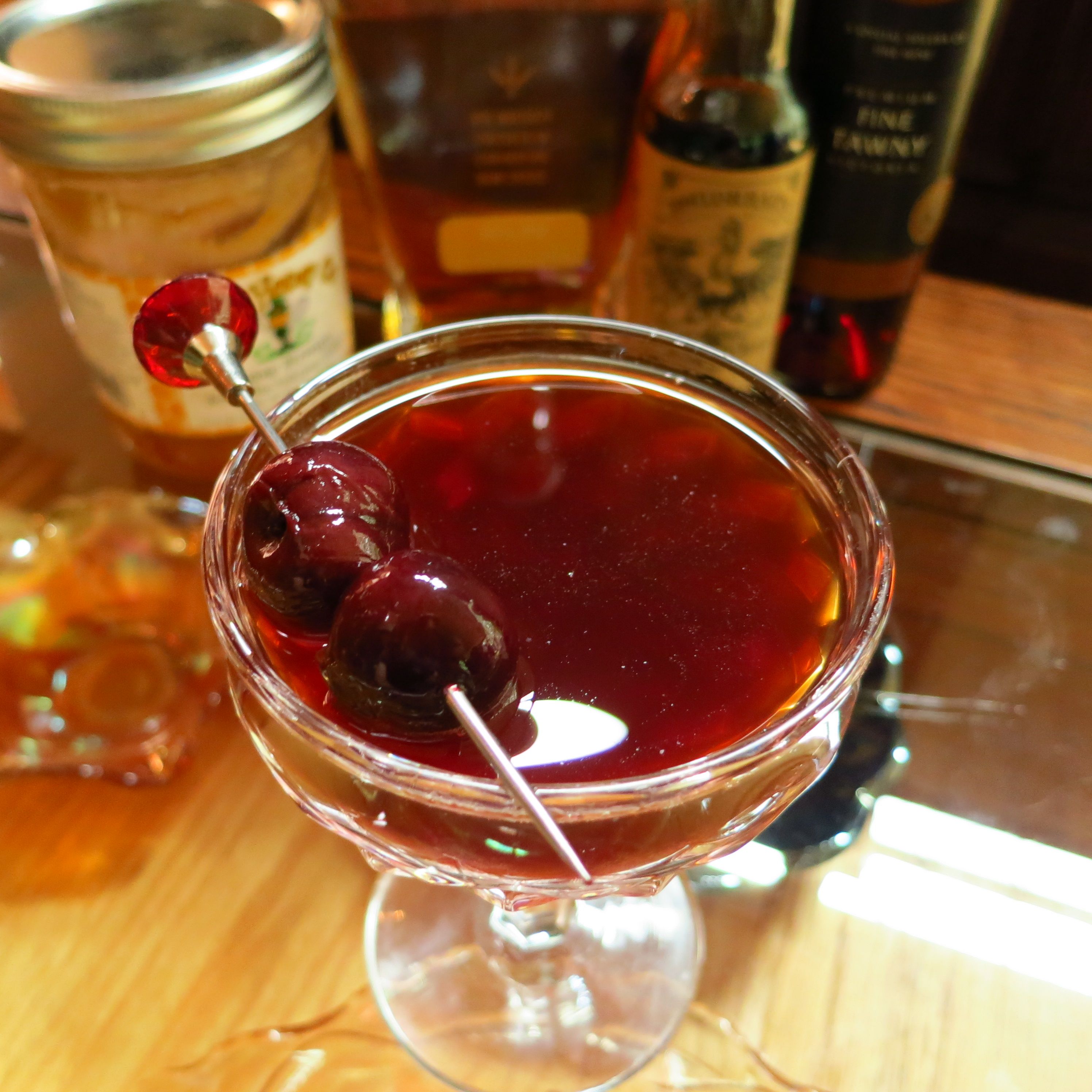 We tried the tawny port with the rye almost first thing, and really liked the way their sweeter flavors tied together the dried fruit notes of the port and the spicy notes of the rye. We sweetened it up a touch with honey rather than sugar to add a little more richness, then used Boker’s bitters to give it some backbone. So named ’cause it’s a good alternative to a Manhattan 😉