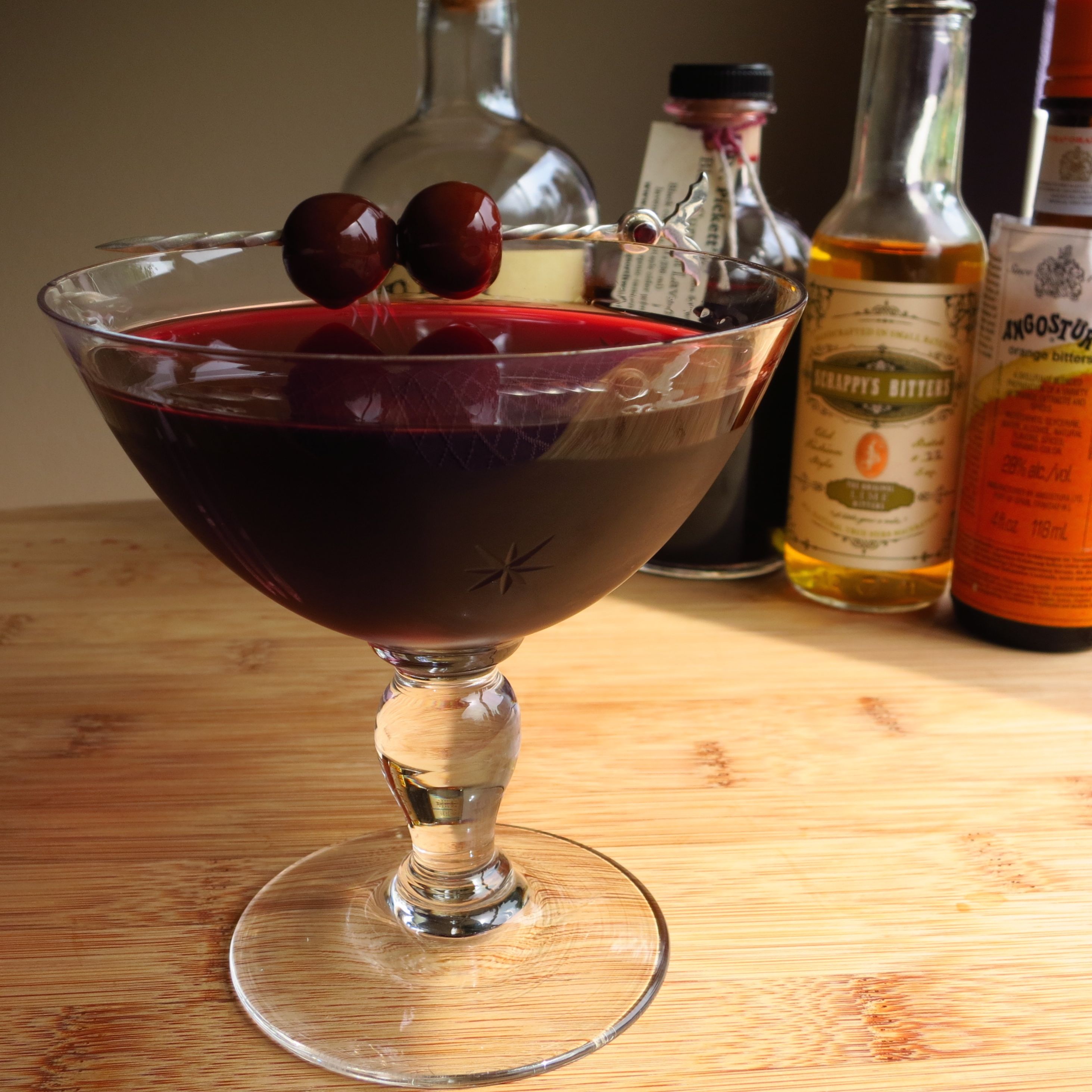Stir with ice, strain into a glass. Garnish with bourbon cherries.