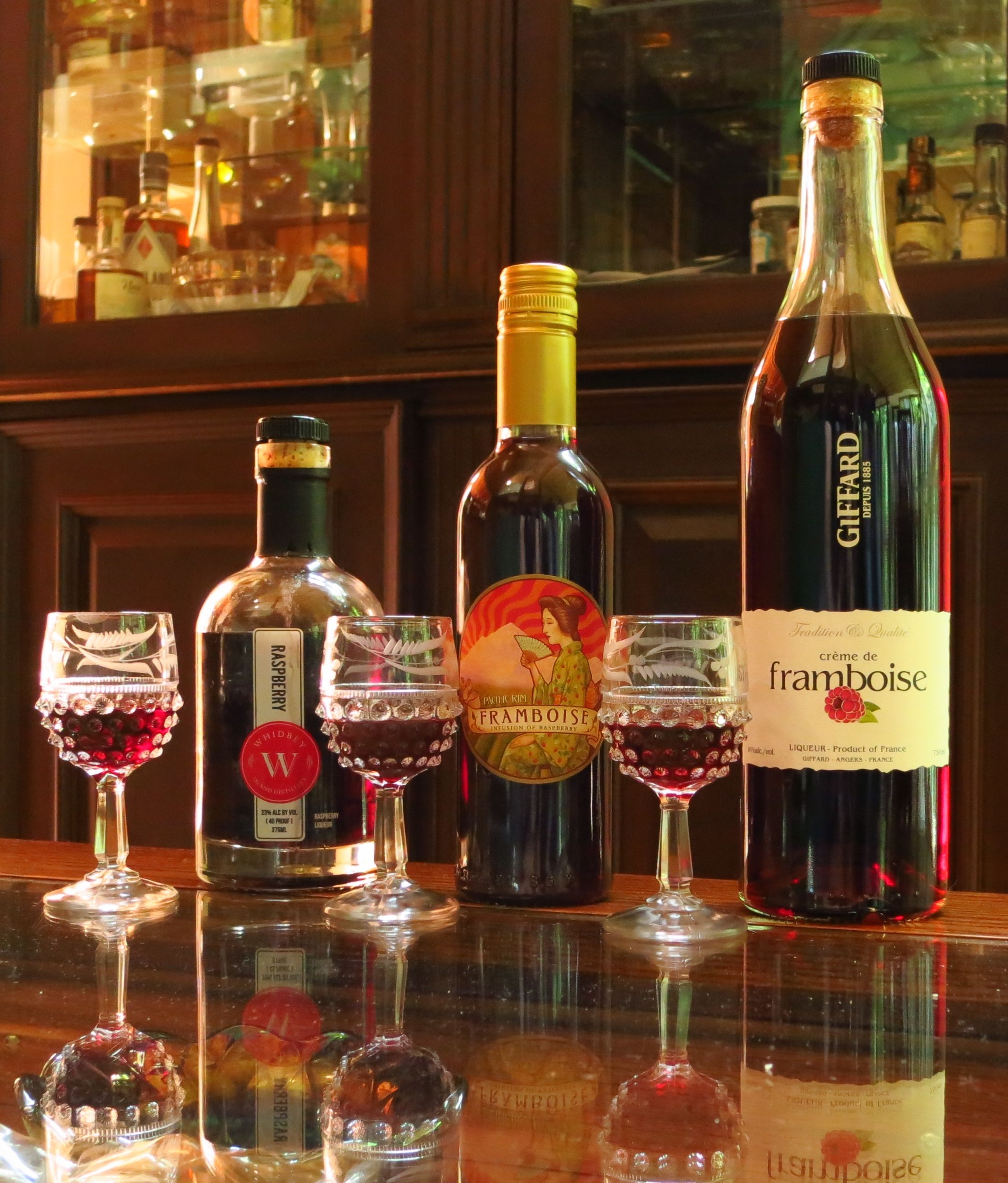 As is typical of us, we’re never content to have just one of anything 🙂 If there are multiple brands of a particular liquor or liqueur, we like to try all of them to see what makes each one unique, and also figure out what recipes they work best in. This week, we decided to taste the various raspberry liqueurs that we have in the liquor cabinet, and then try them in one of our original recipes to see how they compare.