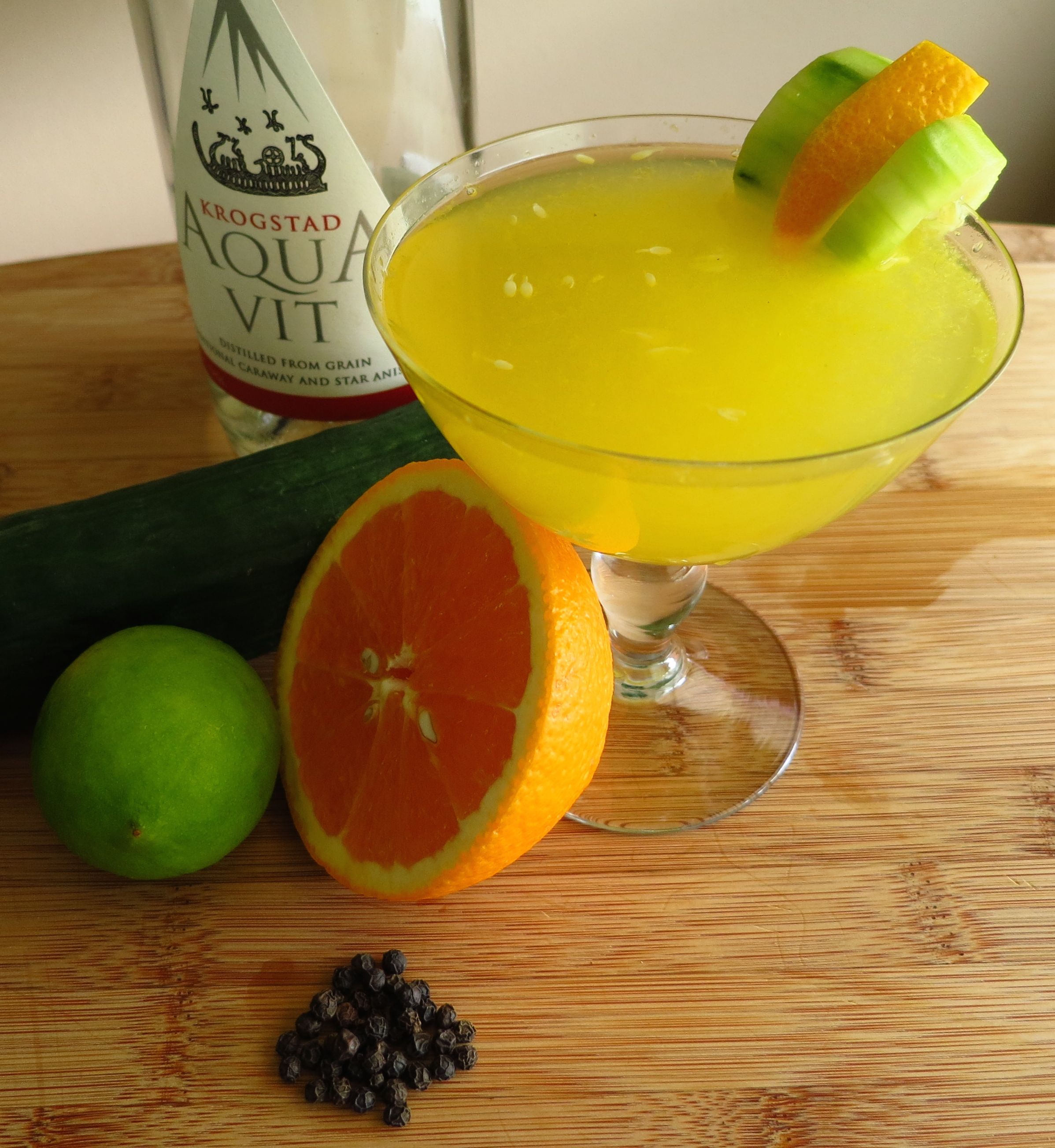 Recently Drinkwire put forth a challenge to create a unique punch recipe for the upcoming 4th of July holiday. We’re all about challenges around here, so we decided to give it a whirl. 🙂 With that in mind, we set out to create a couple of new punch recipes. Shaun felt that with some re-imagining, our Sunbreak cocktail might make an interesting punch. Since that has aquavit in it, it inspired Christa to experiment with that spirit as well, and we ended up with two aquavit-themed punches. If you’re not familiar with aquavit, check out one of our other posts highlighting it. It’s a very interesting spirit, so read on to see what we came up with.