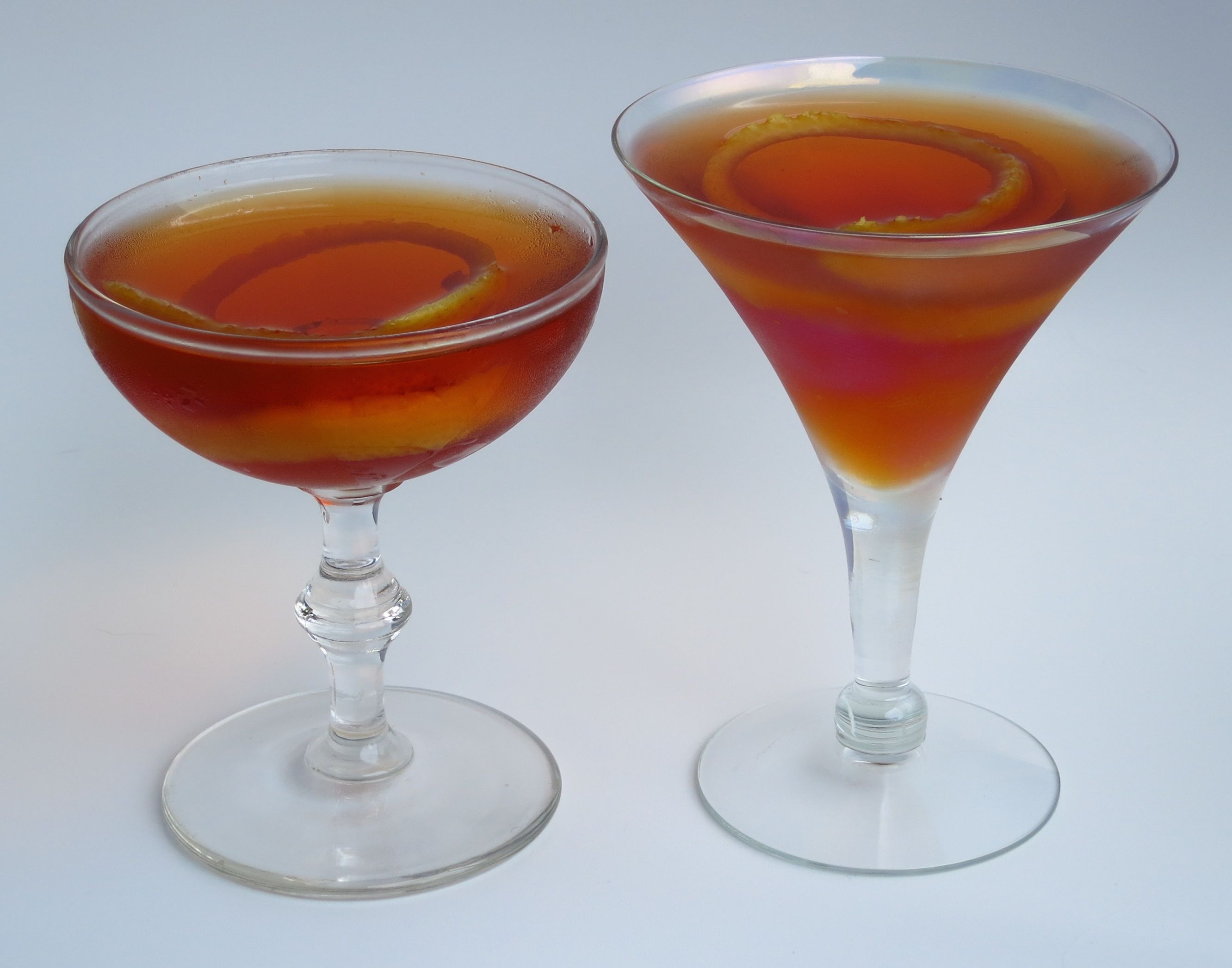 Next up, Christa wanted to try tequila in a Negroni. We tasted the ingredients in several different proportions and found that Campari didn’t quite jive with either tequila, so we tried Aperol as a fruitier, less bitter alternative. Turns out the orange notes it brought paired much better with tequila. The drink is so named because while there are always three in a triumvirate, the power each member holds is not necessarily equal 😉