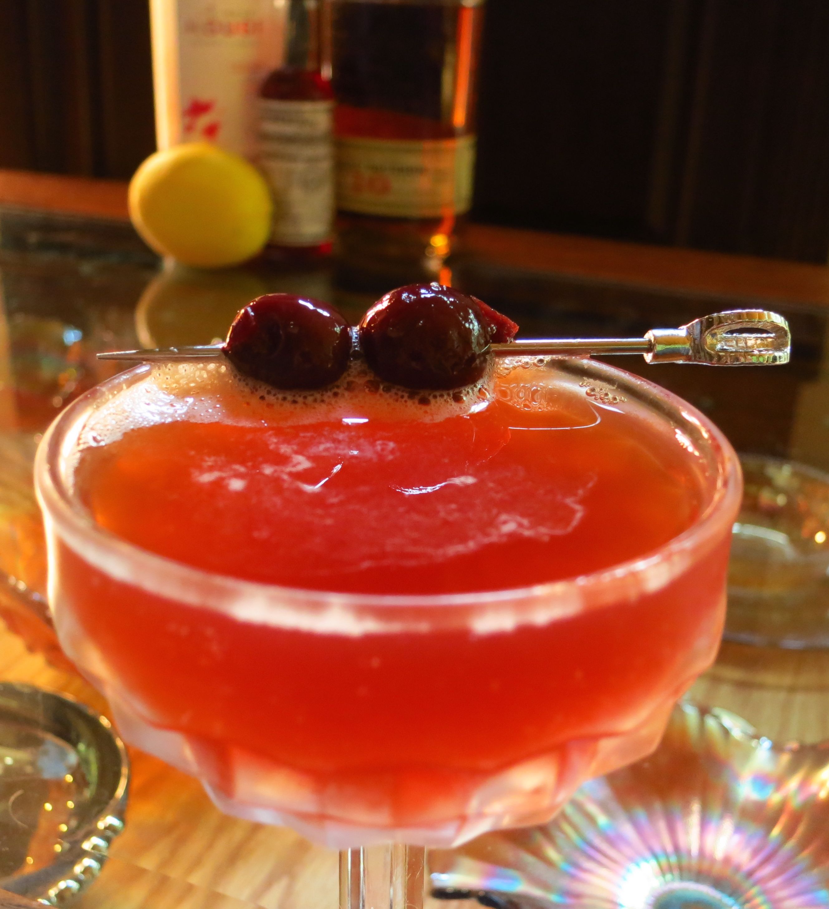 - 1 1/4 oz cherry liqueur (we used the Roi Rene Rouge. We suggest you adjust the amount of simple if using another cherry liqueur)