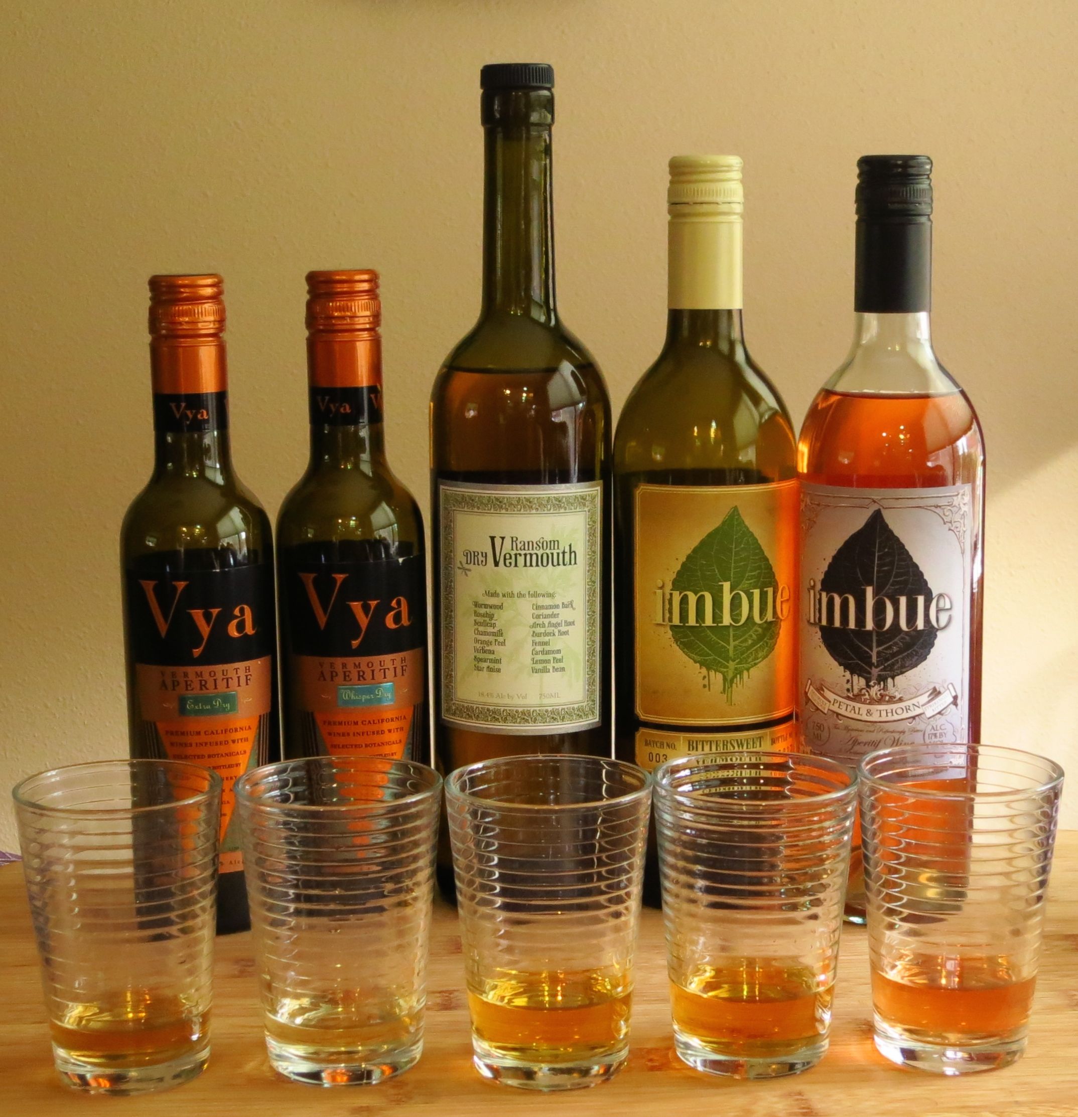 We currently have 7 different white vermouths in the liquor cabinet. One of them isn’t very good, so we set it aside. It is sentenced to be used in punch or some such 😉 One of them is a sweet white vermouth, so out of the ordinary and not a good choice for this lineup. That left 5, Vya Whisper Dry, Vya Extra Dry, Imbue Bittersweet, Imbue Petal & Thorn and finally the Ransom Dry Vermouth. First up, we tasted all of them side by side.
