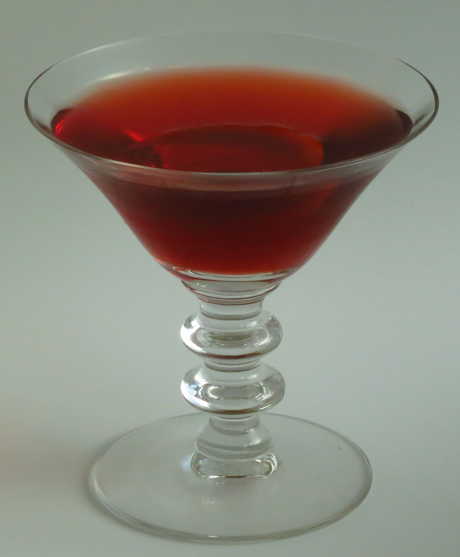 Next up is one of our original cocktails. This one demonstrates how a small amount of Campari can really add to the cocktail without overwhelming it. It’s much more approachable in our opinions, while still giving the drinker a taste of what Campari is like. This cocktail came about because we frequently have leftover cherry syrup, either from Luxardo maraschino cherries or our own brandied cherries, so we wanted to see if we could use it in some interesting way rather than throw it out.