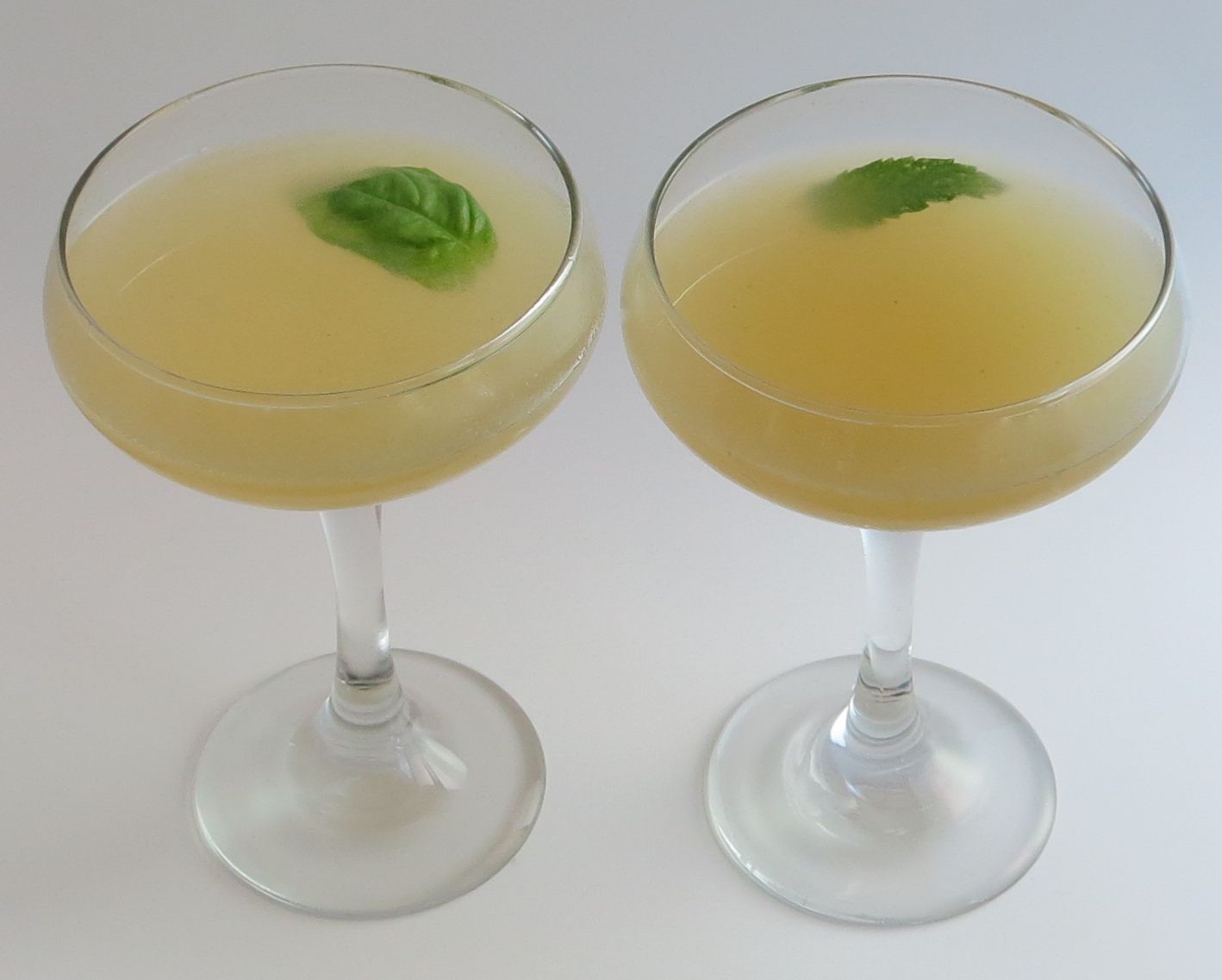 Both versions are quite tasty. To our palates, the mint version is smoother and more integrated, but the individual flavors get lost a bit. The basil version lets the individual components speak up more, but the transitions between the flavors are more notable and the finish is more intense in terms of acidity. It surprised us that that one change can make that big a difference on the whole balance of the drink. Sure, we would have expected it to taste like mint instead of basil, but changing the overall character of the drink was more than we expected.
