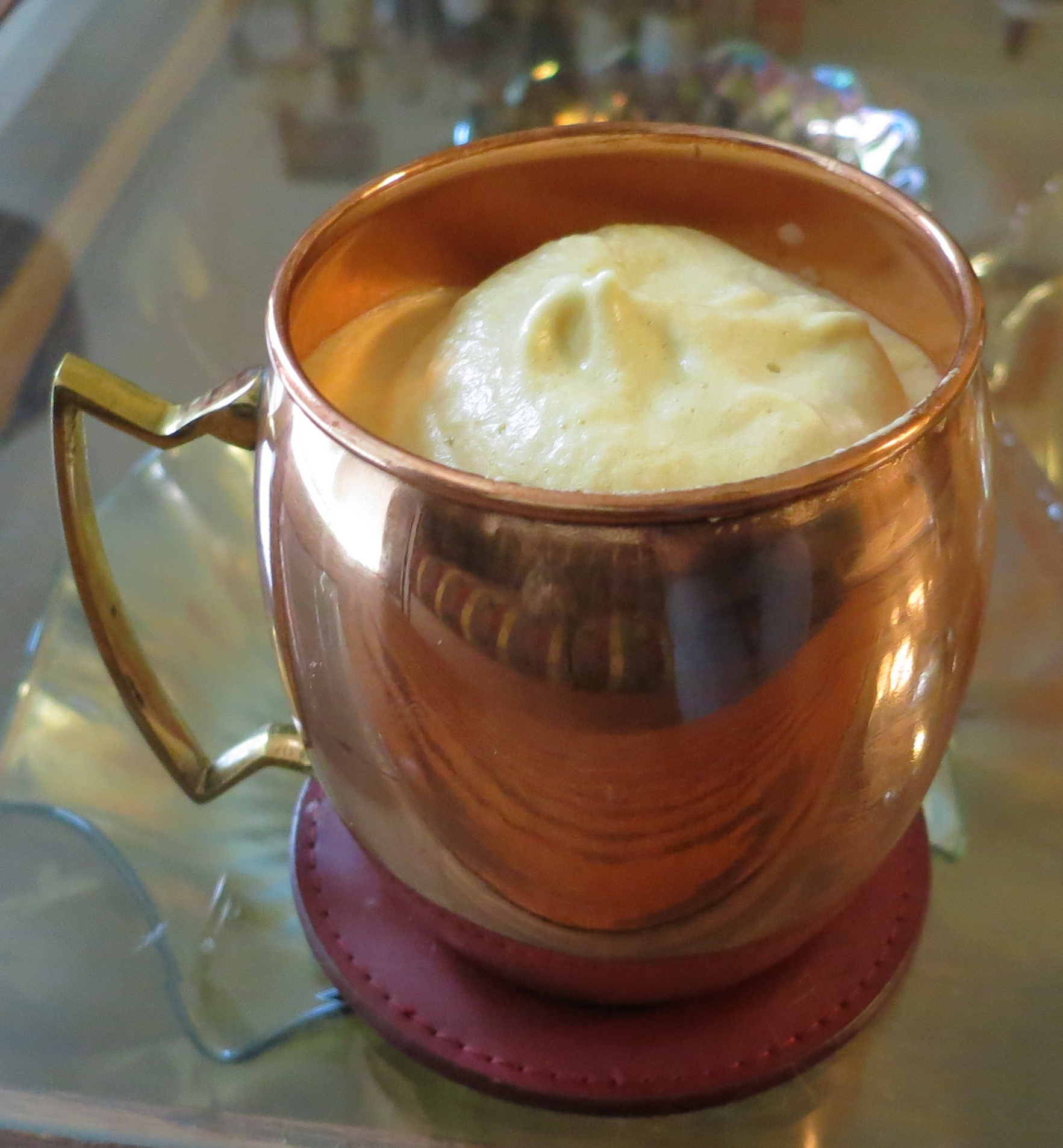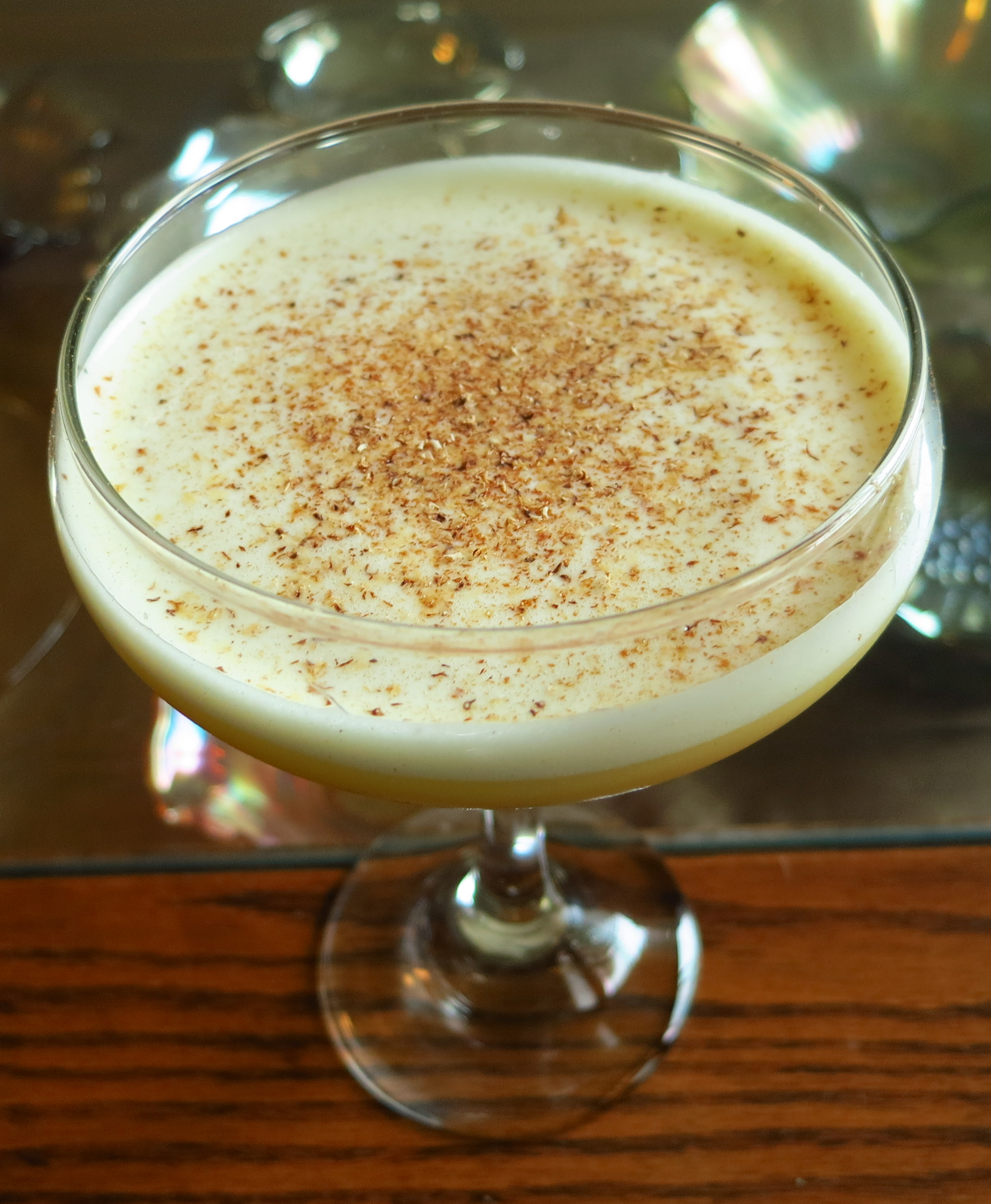 - Palate: Nutty notes and rye spice to start. Big, round sweet flavor like ginger bread on the mid-palate, with molasses, baking spices & ginger, which then dries out into honey, pollen and herbal flavors. Finish is nutmeg and barrel notes with a return of the rye spice. Great mouth feel and texture, very smooth and silky. Comes across much lighter than expected; given the amount of liqueur and a whole egg we expected it to be somewhat syrupy.